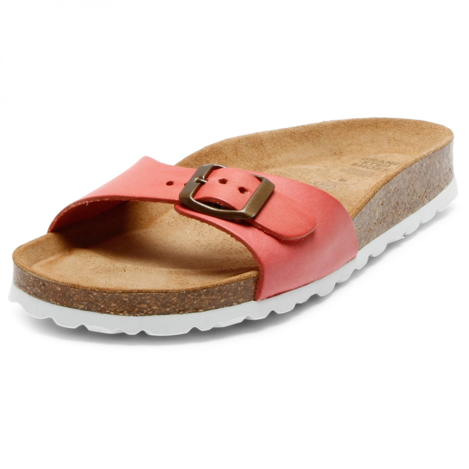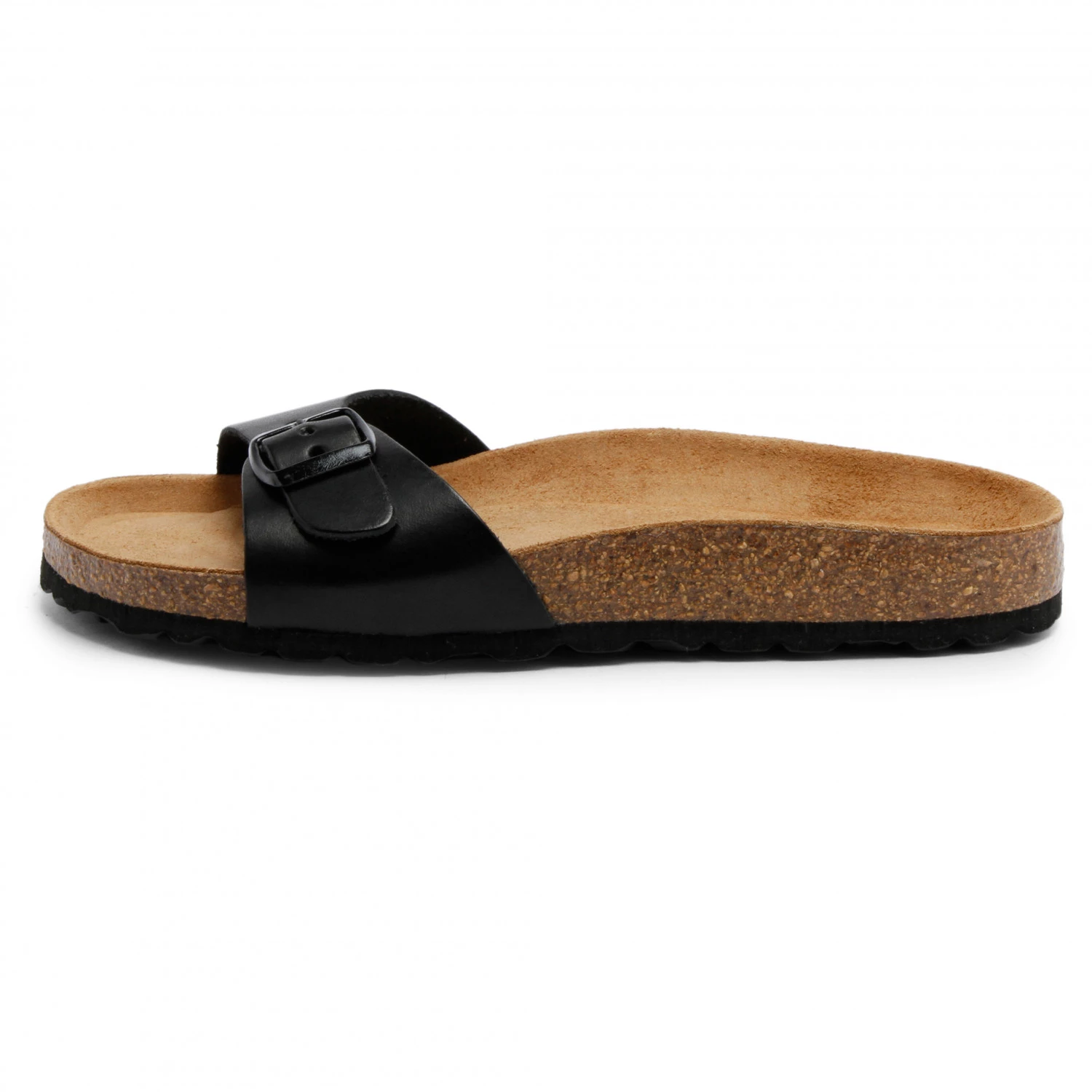 La semelle en EVA absorbe les chocs et, associée au liège et au latex, garantit une marche confortable. Les semelles en EVA sont plus légères et plus souples que les semelles traditionnelles en gomme. Le crantage de la semelle accroche bien lors de la marche. La bride discrète est constituée d’un beau cuir lisse à tannage végétal et elle se règle en largeur à l’aide d’une boucle. La semelle intérieure est en cuir velours souple, sans chrome. La claquette est fabriquée dans des conditions de travail équitables en Espagne.